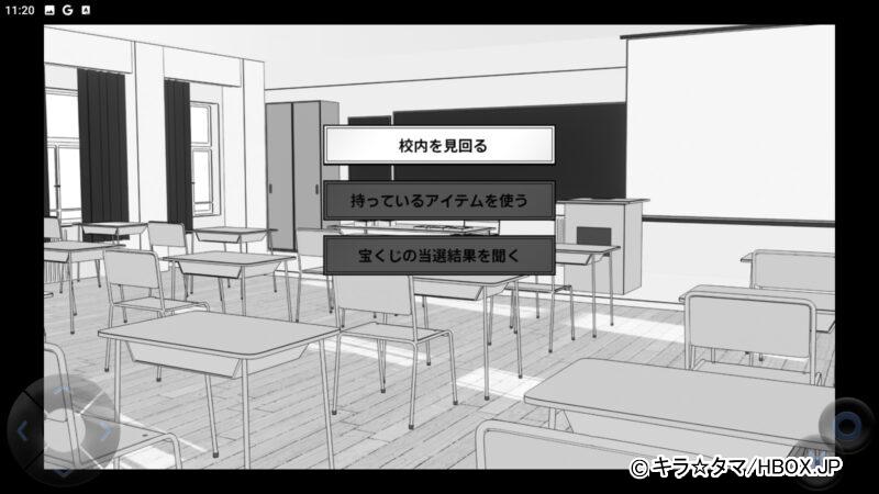 朝パートでは主人公が授業を行い、開いた時間で校内の見回りや宝くじの当選確認ができる。