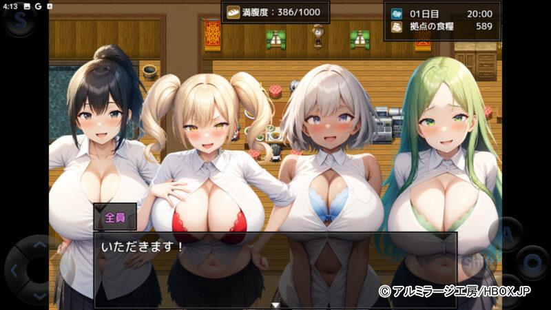 生徒たちとエッチすることで主人公の満腹度上限値や攻撃値などのステータスが上昇して強くなっていくぞ!