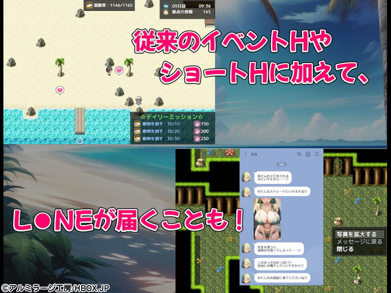 本作は満腹度を維持しながら女の子たちと無人島生活をしていくサバイバルシミュレーションゲームだ!