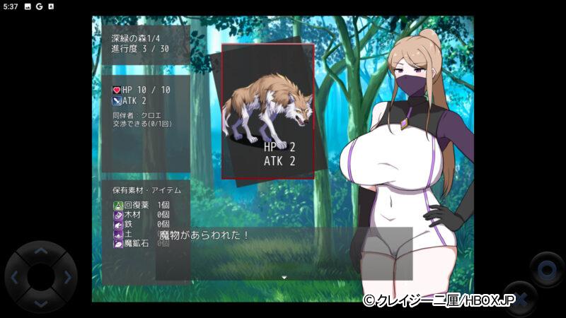 戦闘は「戦う」か「逃げる」を選ぶシンプルなコマンドバトルで、戦うとATK値に応じたダメージを与えられる。