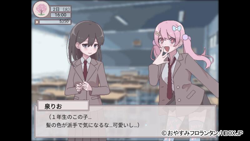 行動するごとに時間が過ぎていき、曜日によって登場するヒロインや可能な行動が変化したぞ。
