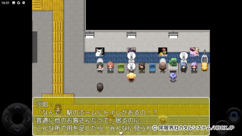 HBOXで遊べるiPhone&Android対応の「トイレット☆ラビリンス!」は、異変だらけの駅に降りてしまったOLちゃんが、尿意を我慢しながら出口を探すスマホエロゲだ!