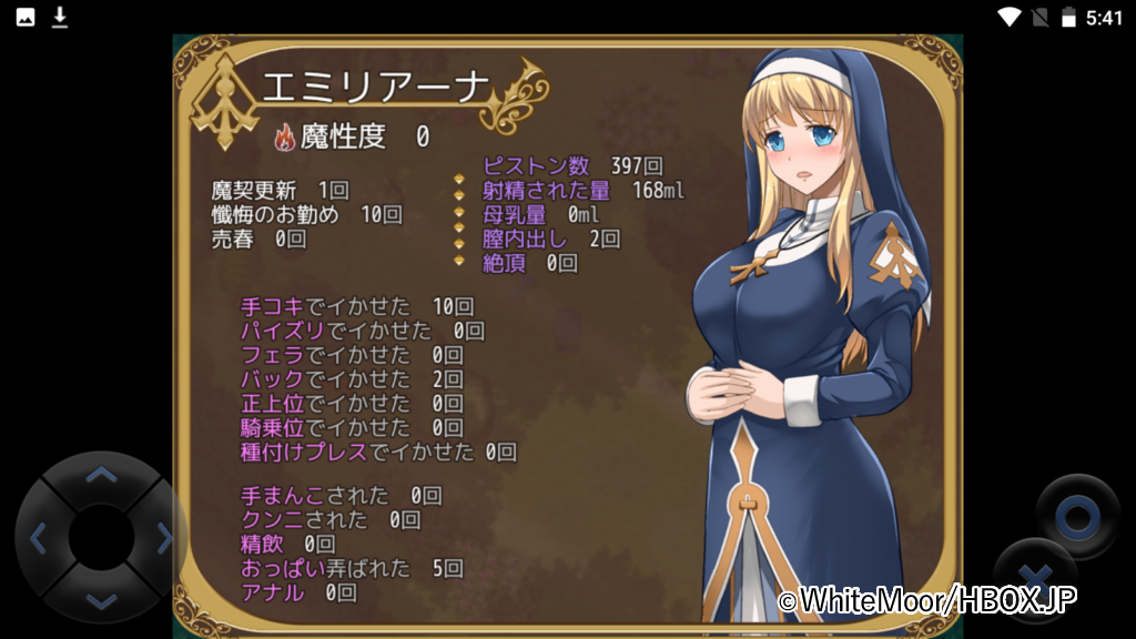 エロステータスも搭載しており、すべてゼロから始まるステータスが進めるごとに増えていくのでやり応えもある!