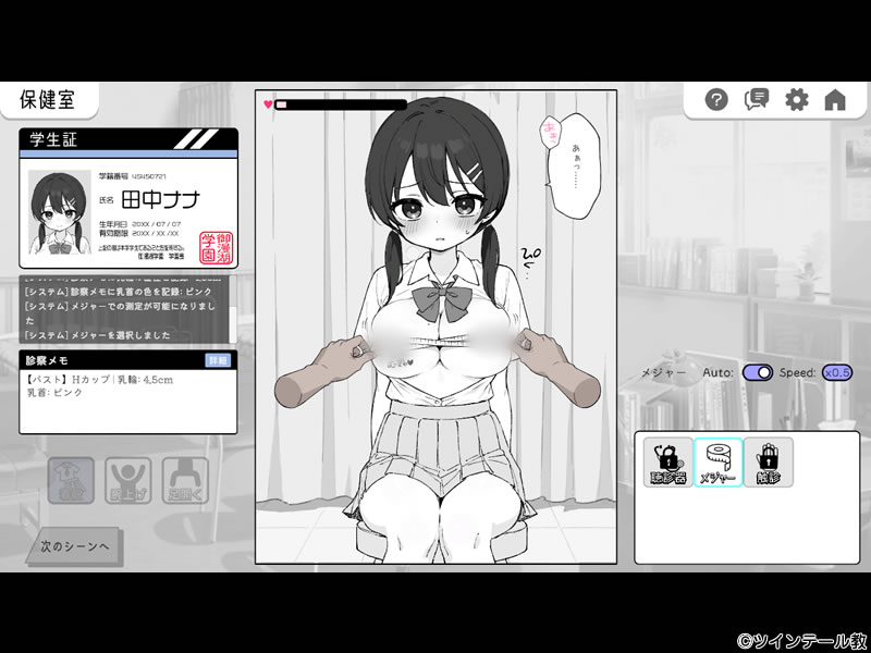 作品レビュー記事:【ドキドキ!セクハラ健康診断】真面目で優等生なJKちゃんをエッチな健康診断でイカせまくれ!【Androidのみ】