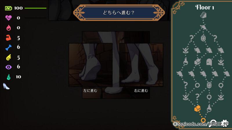 ダンジョンでは分かれ道やイベントに遭遇するたびプレイヤーが選択することになる。