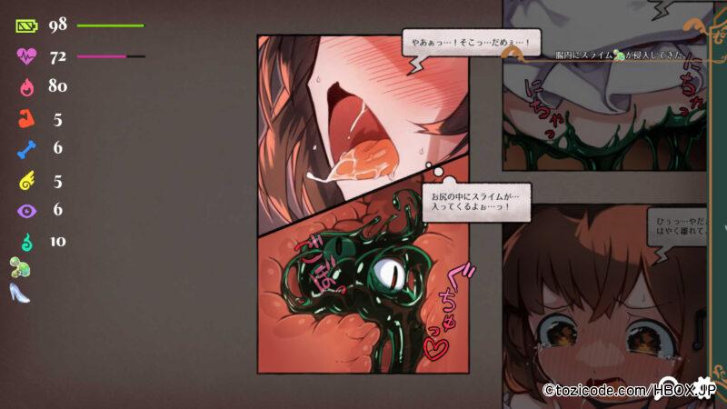 スライムに侵入されたカナデちゃんは安全な場所を探して探索を続けるのだが、その途中でお腹の中のスライムが暴れてしまう!