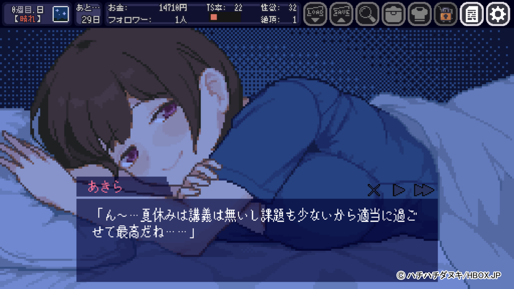 アキラちゃんには性欲値というステータスがあり、日常生活でムラムラが溜まっていくのだが……。