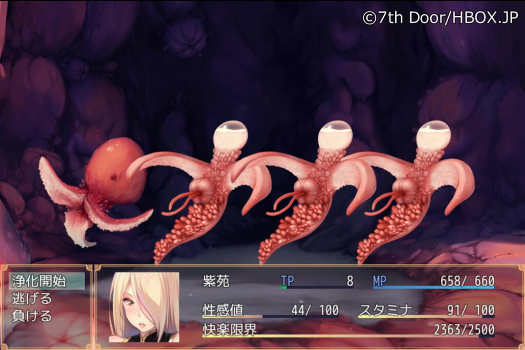iPhoneでも遊べる!「7th Door」様のズッポリ丸呑み&超大量ダクダク粘液RPG「退魔師紫苑」の紹介!