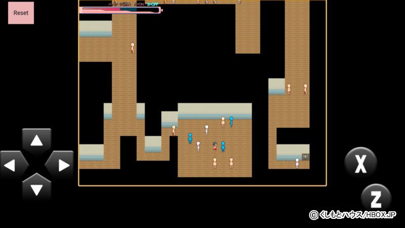 ゲーム自体は敵シンボルを避けてゴールを目指すアクションゲームなのに、セクハラの種類と絶頂シチュエーションが多すぎて、なかなか先に進めない!