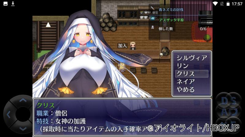 おっぱいが1番大きかった……ではなく、主人公のエレインちゃんが剣士なので、パーティーバランスを考えてヒーラーが欲しい。