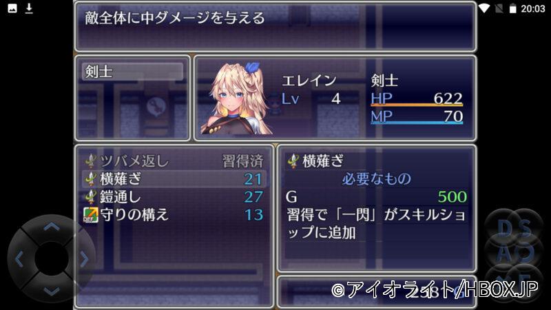 ステータスはHPとMPで、攻撃方法は通常攻撃とスキルのみというシンプルタイプ。